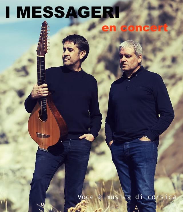Fabrice et Jean-Michel ANDREANI, chantent une Corse contemporaine, profondément ancrée dans ses racines, mais toujours soucieux de garder un regard tourné vers l’avenir. Entre musique traditionnelle et rythmes actuels, I MESSAGERI flirte avec la world pour une musique sans frontière, où la Corse lie les hommes. Au fil des chants, les voix et les mélodies se tressent, s’envolent, touchent la nef d’une église aux couleurs d’encens, le plafond illuminé d’un théâtre, le ciel étoilé d’une place de village, et reviennent comme un refrain, déjà adopté pour accompagner le long des jours.